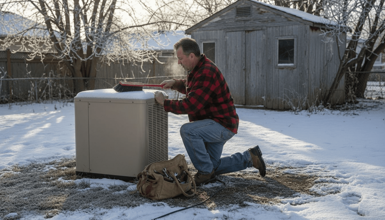 Regularly remove any snow, ice, leaves, or branches around the outdoor unit. Keeping the area clear allows for proper airflow and can prevent a reduction in efficiency by up to 25% during winter months.